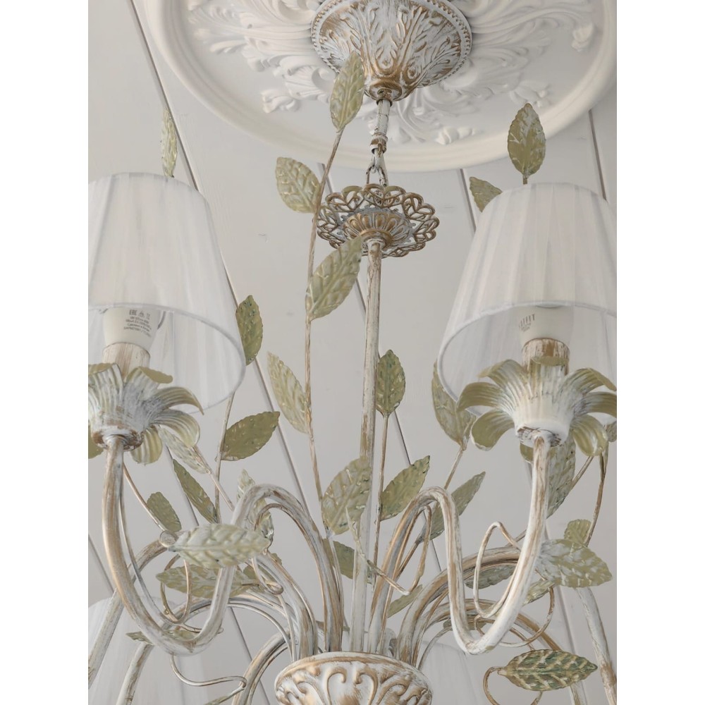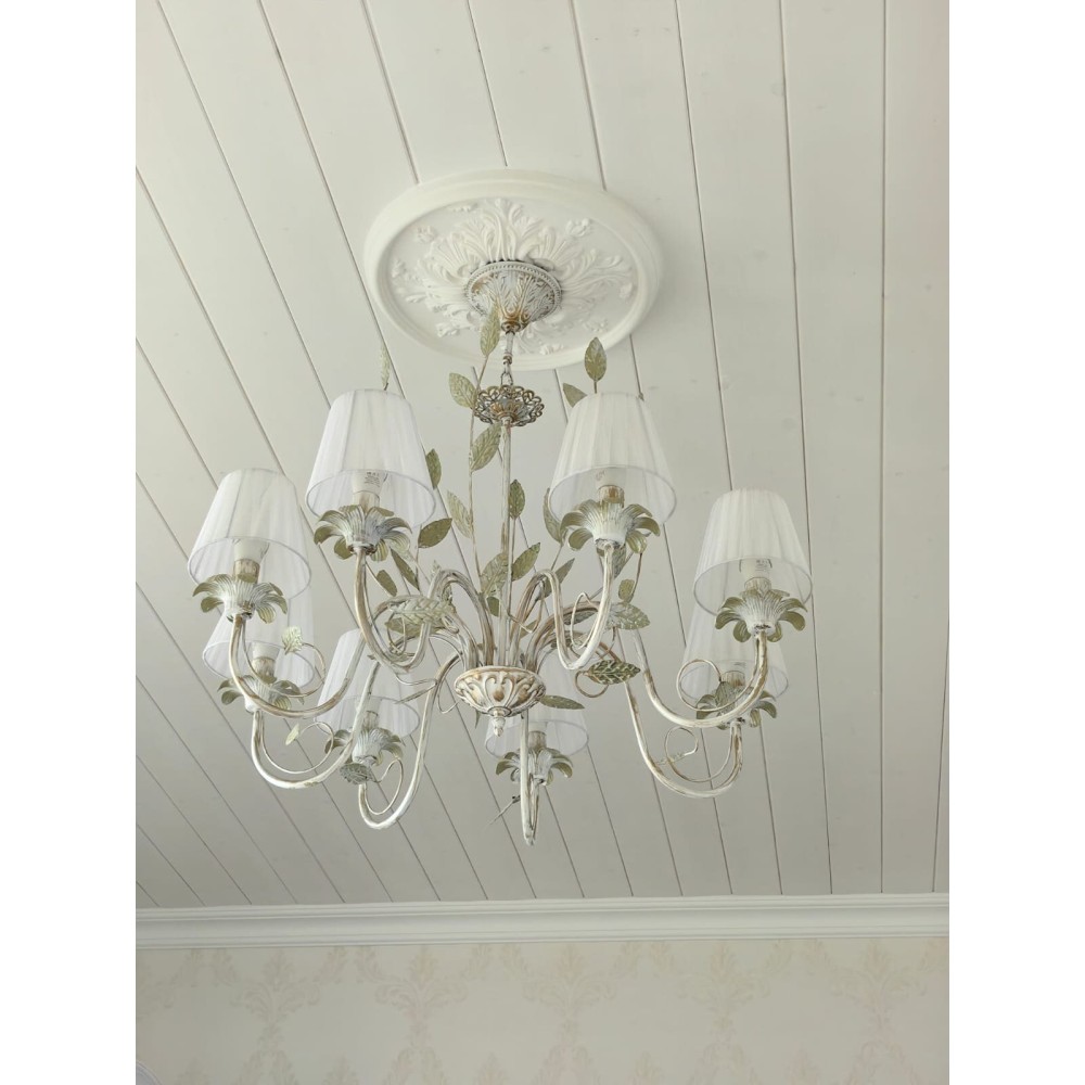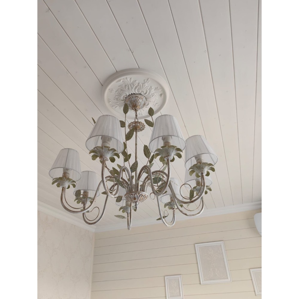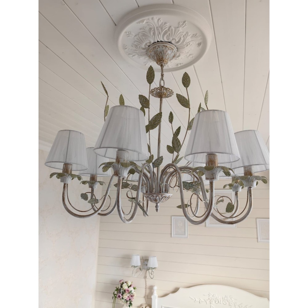 Подвесная Люстра S1131-8 от Петрасвет – Элегантное Освещение для Вашего Дома Эта роскошная подвесная люстра – идеальное решение для создания атмосферы уюта и изысканности в вашем интерьере. Модель S1131-8 от Петрасвет сочетает в себе классический стиль, современную элегантность и богатую флористическую тематику, превращая вашу гостиную, столовую или спальню в оазис комфорта и красоты. Превосходное Освещение и Стильный Дизайн Люстра S1131-8 – это не просто источник света, это произведение искусства. Благодаря восьми лампам, расположенным в изящных абажурах, она обеспечивает яркое и равномерное освещение площади от 24 до 35 квадратных метров. Световой поток в 6000 люмен гарантирует, что каждая деталь интерьера будет четко видна, а ваша комната будет залита теплым и приятным светом. Роскошный Дизайн и Детали Стиль: Люстра сочетает в себе элементы флористики, классического и современного стилей. Уникальный дизайн с декоративными элементами – листочками и абажурами – создает неповторимую атмосферу. Материалы: Корпус светильника выполнен из прочного металла с патиной золота, что придает ему благородный и элегантный вид. Абажуры изготовлены из ткани, обеспечивающей мягкое и рассеянное освещение. Цвет: Белый цвет металла с патиной золота идеально впишется в любой интерьер, создавая ощущение роскоши и уюта. Размеры: Ширина основания – 12 см, высота – 68-85 см, ширина – 75 см. Удобные размеры позволяют легко интегрировать люстру в различные помещения. Декоративные элементы: Листья и абажуры, выполненные в едином стиле, подчеркивают флористическую тематику и добавляют светильнику неповторимый шарм. Технические Характеристики: Бренд: Петрасвет Модель: S1115 Тип монтажа: Подвесной Тип цоколя: E14 – универсальный тип цоколя, совместимый с различными лампами. Количество ламп: 8 Тип ламп: Поддерживает использование ламп накаливания, светодиодных и люминисцентных типов. (Рекомендуется использование светодиодных ламп для экономии электроэнергии и увеличения срока службы.) Напряжение: 220V – стандартное напряжение для большинства бытовых электросетей. Площадь освещения: 24-35 м? – обеспечивает достаточное освещение для среднего размера комнаты. Световой поток: 6000 лм – яркий и интенсивный свет, идеально подходящий для создания атмосферы в гостиной, столовой или спальне. Направление рассеивателя: Вверх – обеспечивает равномерное распределение света по всей комнате. Тип крепления: Крюк – простая и надежная система крепления. Габариты упаковки: H: 18 см, L: 56 см, W: 56 см – удобство транспортировки и хранения. Срок гарантии: 7 лет – гарантия качества от Петрасвет. Преимущества Люстры S1131-8: Высокое качество: Изготовлена из прочных и долговечных материалов. Элегантный дизайн: Сочетание классического, современного и флористического стилей. Яркое освещение: Световой поток 6000 лм для комфортного и функционального освещения. Универсальность: Подходит для различных помещений, включая гостиные, столовые, спальни и другие. Простота установки: Легко устанавливается и обслуживается. Долговечность: Срок гарантии 7 лет. Экономичность: Возможность использования светодиодных ламп для снижения энергопотребления. Создает атмосферу: Идеально подходит для создания романтической и уютной атмосферы. Эта люстра станет прекрасным дополнением к вашему интерьеру и подарит ва