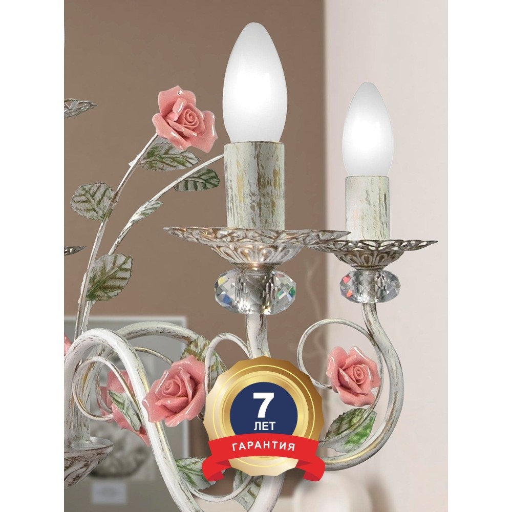 Люстра с хрусталем подвесная ПЕТРАСВЕТ S1132-5 – Изысканный Классический Декор для Вашего Дома Эта роскошная подвесная люстра – идеальное сочетание элегантности, изысканности и функциональности. Люстра ПЕТРАСВЕТ S1132-5 – это не просто источник света, это настоящий арт-объект, способный преобразить интерьер любой комнаты, создавая атмосферу уюта, роскоши и благополучия. Изготовленная вручную российскими мастерами, она станет безусловной звездой вашего дома. Превосходное качество и надежность Люстра ПЕТРАСВЕТ S1132-5 произведена в России, что гарантирует высокое качество материалов и исполнения. Корпус светильника выполнен из прочного и долговечного металла, обработанного специальной патиной золота, что придает ему благородный и теплый вид. Металлическое основание диаметром 12 см обеспечивает устойчивость конструкции. Размеры коробки (20 x 37 x 27 см) позволяют легко транспортировать и устанавливать люстру. Изысканный дизайн и декоративные элементы Центральным элементом люстры является 5 ламп, создающих яркое и равномерное освещение. Использование различных типов ламп – накаливания, светодиодной и люминисцентной – позволяет подобрать оптимальный режим освещения в зависимости от ваших предпочтений. Накаливания обеспечивают теплый и уютный свет, светодиодная – экономичность и долговечность, люминисцентная – яркое и насыщенное освещение. Декоративные элементы люстры – хрустальные вставки и розы розовые – добавляют ей неповторимый шарм и романтичность. Хрустальные вставки, выполненные из высококачественного стекла, преломляют свет, создавая множество мерцающих бликов, которые наполняют комнату мягким и рассеянным светом. Розы розовые, выполненные из хрусталя, придают люстре нежный и женственный вид. Технические характеристики и особенности Бренд: ПЕТРАСВЕТ Модель: S1017 Тип монтажа: Подвесной Тип цоколя: Е14 Напряжение: 220 В Световой поток: 3750 лм Площадь освещения: 15-20 м? Количество ламп: 5 Направление рассеивателя: Вверх Материал светильника: Металл Цвет светильника: Белый с патиной золота Срок гарантии: 7 лет Тип крепления: Крюк Размеры: Ширина основания: 12 см, Высота: 45-62 см Универсальность и стилистическая гармония Люстра ПЕТРАСВЕТ S1132-5 – это универсальный светильник, который подойдет для различных интерьеров. Ее стилистика сочетает в себе элементы классики, флористики и современности, что делает ее идеальным выбором для гостиной, столовой, спальни, лоджии или коридора. Благодаря своему изысканному дизайну и высокой функциональности, она станет настоящим украшением вашего дома. Преимущества покупки люстры ПЕТРАСВЕТ S1132-5: Роскошный дизайн: Изысканная комбинация хрусталя, розы и металла создает неповторимую атмосферу роскоши и элегантности. Высокое качество: Произведена в России из высококачественных материалов, что гарантирует долговечность и надежность. Универсальность: Подходит для различных интерьеров и стилей. Яркое и равномерное освещение: 5 ламп обеспечивают достаточное освещение для любой комнаты. Экономичность: Возможность использования различных типов ламп позволяет выбрать оптимальный режим освещения. Гарантия: 7 лет гарантии на изделие. Простота установки: Легко устанавливается и обслуживается. Идеальный подарок: Подарите близким человеку неповторимый источник света и красоты. Создайте атмосфер