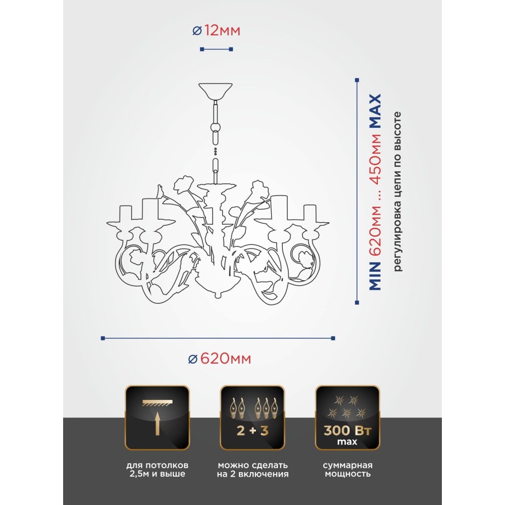 На складе Код товара: S1235-5 Люстра Петрасвет S1235-5, 5хЕ14 макс, 60Вт