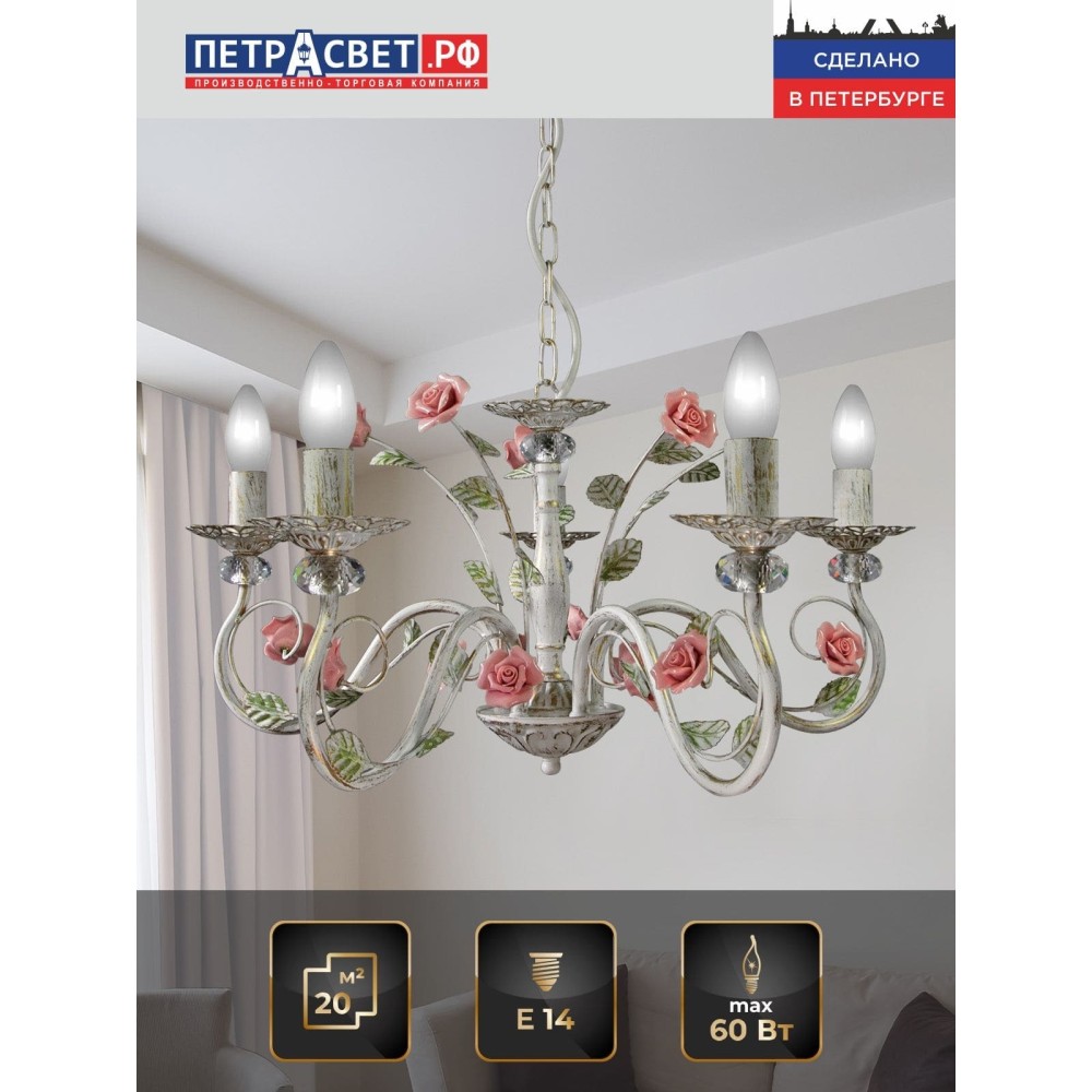 Люстра Петрасвет S1251-5, 5хЕ14 макс, 60Вт
