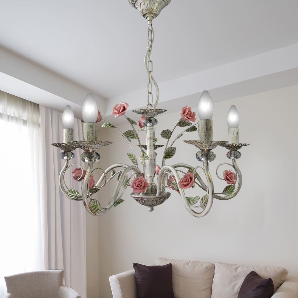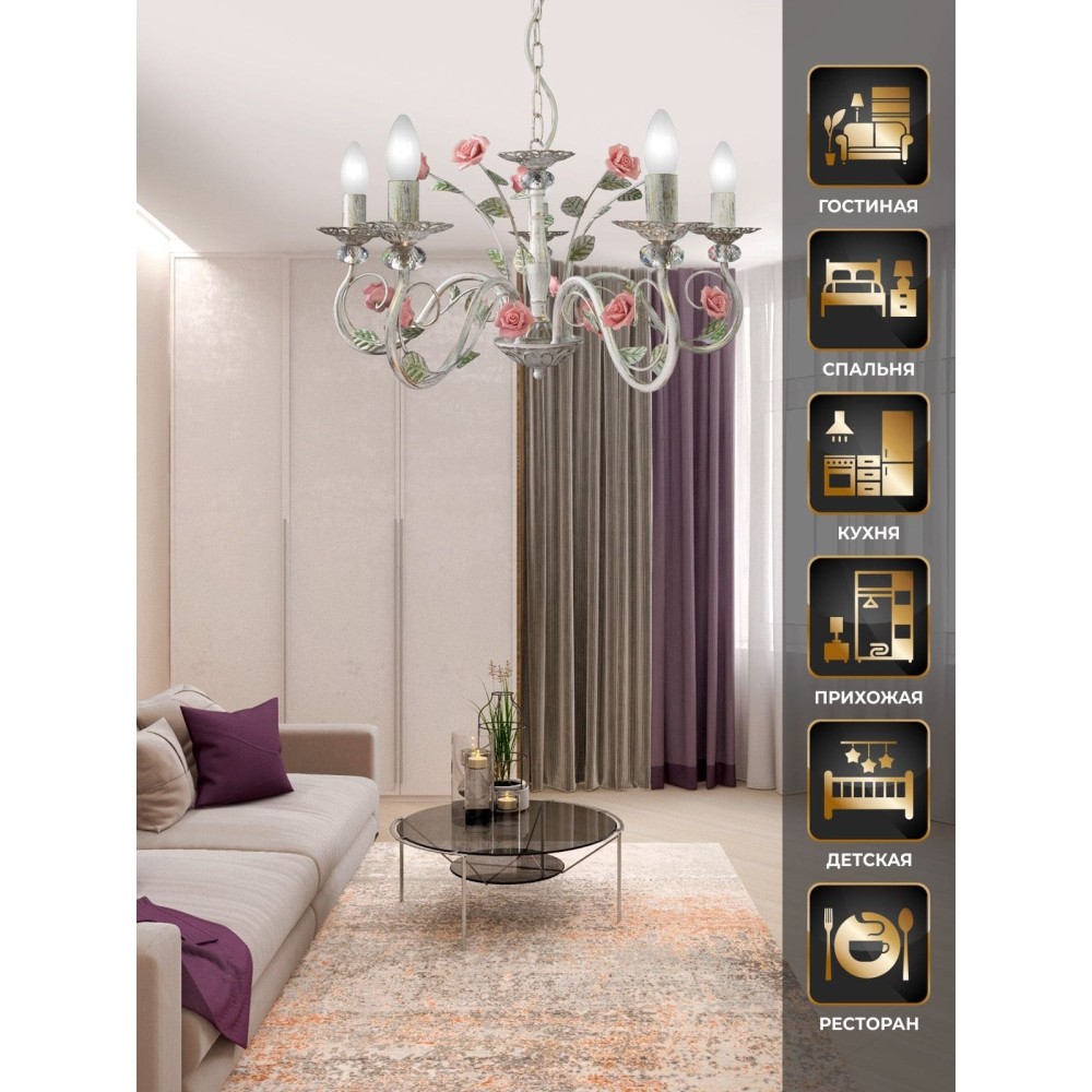 Технические характеристики Люстра с хрусталем подвесная с цветами 5 ламп S1132-5